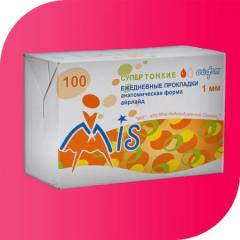 Наименование: Mis ежедневные прокладки СУПЕР ТОНКИЕ анатомическая форма аэрлайд 100 шт. , 2 капли