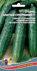 Наименование:054409 Огурец Салатный суперранний (УД) Цена: 19.9 руб. Описание: Скороспелый гибрид женского типа цветения для выращивания в открытом и закрытом грунте. Зеленцы темно-зеленые, длиной 16-22 см, редкобугорчатые, белошипые, без горечи. Сорт отличается дружной отдачей урожая и высокими товарными качествами. Отлично подходит и для салатов, и для заготовок. Огурцы выращивают, высевая семенами в грунт или через рассаду. Для получения рассады семена высевают в конце марта - начале апреля, на глубину 1-2 см, при температуре 25 градусов. Рассаду высаживают в грунт, когда минует угроза заморозков. Семенами огурец высевают в конце мая. Глубина заделки 1-1,5 см. Посевы укрывают плёнкой. Схема посадки 60х 15 см. Для отличных урожаев необходим полив тёплой водой, подкормки раз в 2 недели, прополки, рыхление. Регулярные сборы стимулируют большее количество завязей и более высокий урожай.
