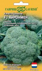 Наименование:062994 Капуста брокколи Айронмен F1 (Гавр) Цена: 61.6 руб. Описание: Среднеранний (83-110 дней от всходов до технической спелости), продуктивный гибрид для выращивания с ранней весны и до поздней осени. Розетка листьев вертикальная до приподнятой. Листья среднего размера, сине-зелёные, пузырчатые, волнистые по краю. Головка куполообразная, средняя, серовато-зелёная, среднебугорчатая, массой 350-450 (до 600) г, отличного вкуса. После срезки основной головки формирует несколько вторичных головок. Используют в свежем виде, домашней кулинарии и замораживания. Посев на рассаду — в конце марта. Пикировка — в фазе семядолей. Высадка в грунт — в середине мая по схеме 30х50 см. Урожайность 2,9-3,7 кг/кв.м. Нуждается в регулярном поливе и прополке.