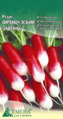 Наименование:000435 Редис Французский завтрак, 2г (цв.) Цена: 11.4 руб. Описание: Сорт раннеспелый. От всходов до созревания корнеплодов 21-25 дней. Корнеплоды цилиндрические, крупные, весом 15-30 г, ярко-алого цвета, с белым кончиком. Мякоть нежная, сочная, пикантная. Посев апр-май; урожай май-июнь